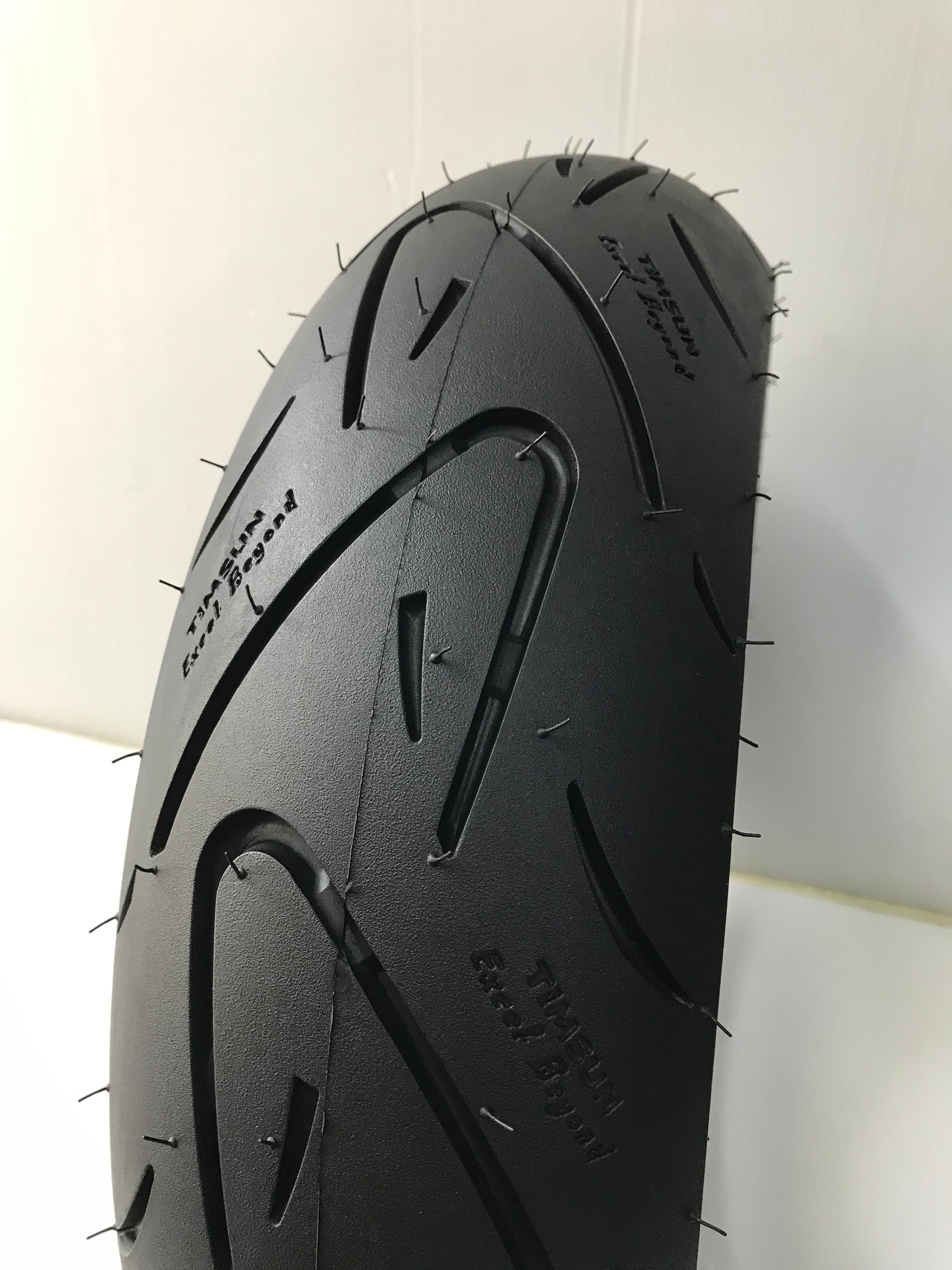 フュージョンのフロント扁平タイヤです。サイズはローダウン定番のフロントサイズ110/70-12。TIMSUN製。ストリートハイグリップ。ウェットグリップ性能と耐摩耗アップ。スピードメーターの誤差が発生します。